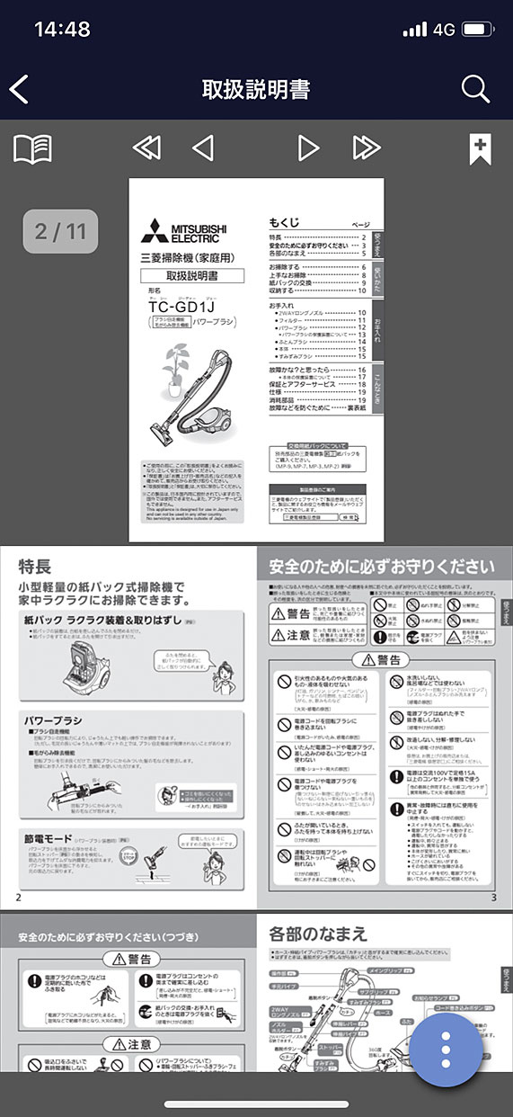 スマホで取扱説明書を表示してみました。もちろん拡大もできます。