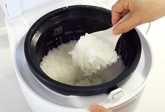 T:炊き上がりにしゃもじを入れたとき、ごはんがつぶれず、しっかりしていると感じました。