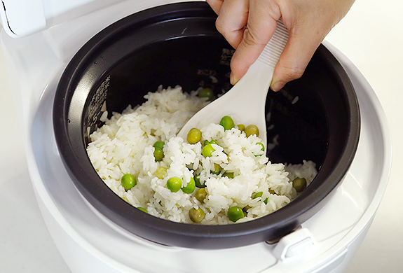 さらに追加でリクエストして「グリーンピースごはん」も炊いてもらいました。