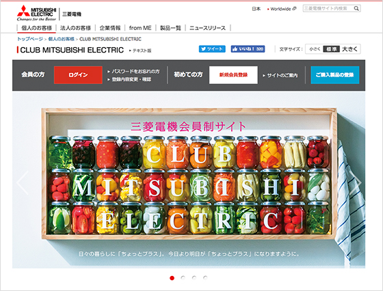 7月からCLUB MITSUBISHI ELECTRICトップページのビジュアルが変わりました。色とりどりの夏野菜がギュギュッと詰まった瓶詰めたちの写真、もうご覧いただけましたか?常にフレッシュでおいしい情報が詰まったサイトでありたい。そんな想いを込めて、これからも季節ごとに旬の食材が詰まった瓶詰めをモチーフに展開していく予定です。