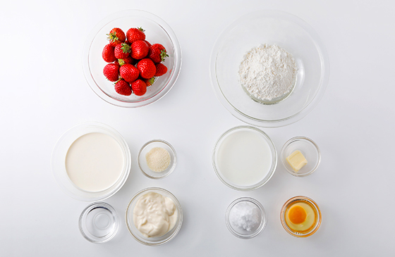 いちごと、プリンを使ったカスタード風味のムースクリームをたっぷり巻いて、