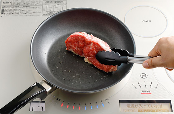 肉の状態や水分量、サシの入り方などで火の入り方は変わるので、はじめのうちはなるべく同じ肉、同じフライパンなど同条件で加熱の加減や調理道具のクセを覚えたい。