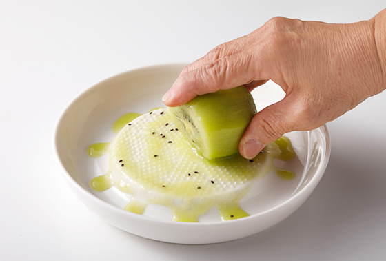 グリーンキウイは皮をむき、細かい目のすりおろし器ですりおろす。