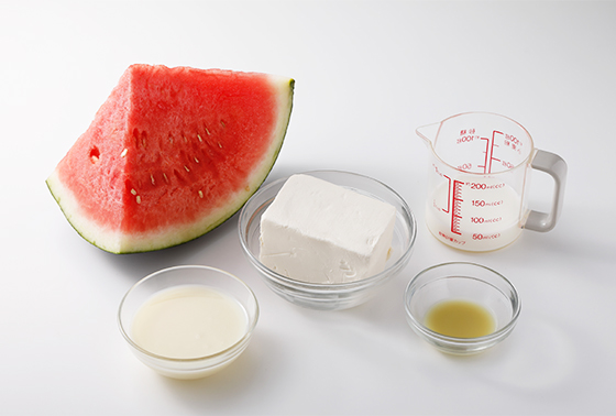 - ・スイカ(皮とタネを除き2~3cm角に切ったもの)…300g