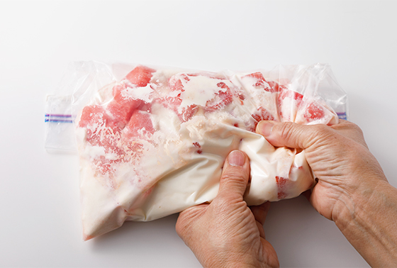 袋を平らにしてバットなどにのせ、冷凍庫で冷やし固める。