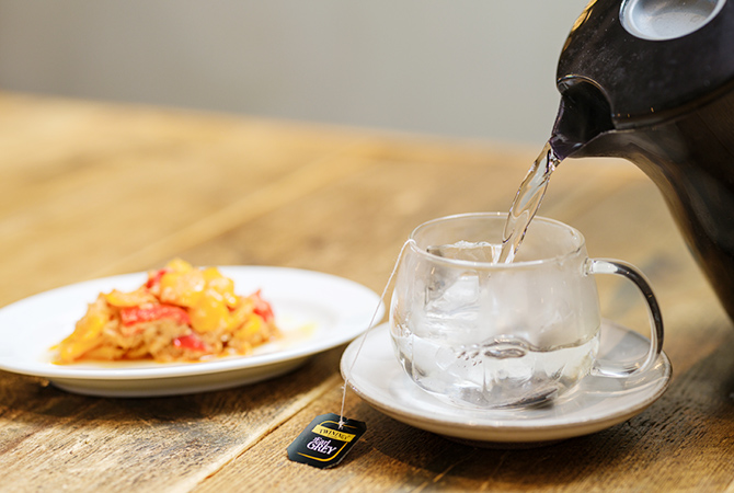 使ったティーパックは、二煎目にとっておきましょう。食後にホットティーとしていただきます。高温抽出によって出てくるタンニンの苦味も、食後に飲めば油分を洗い流して口の中をさっぱりとさせるのに効果的です。1種類の茶葉でも入れ方を変えるだけで2通りの風味を楽しめます。