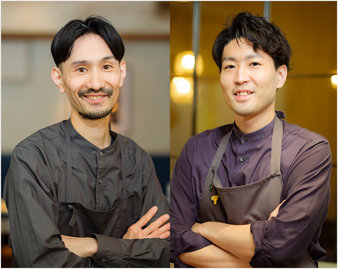 ミシュランガイド東京2020から3年連続で一つ星を獲得しているレストラン『sio』と、こだわりのナチュラルワインとカジュアルイタリアンが楽しめる『o/sio』。それぞれでソムリエを務めるのが、亀井崇広さんと栗原洋さんです。両店舗では、紅茶を使った本格的なノンアルコールペアリングのメニューも提供。「紅茶は自由。種類や入れ方によって幅広い楽しみ方があることを知っていただけたら」とおふたりは語ります。
