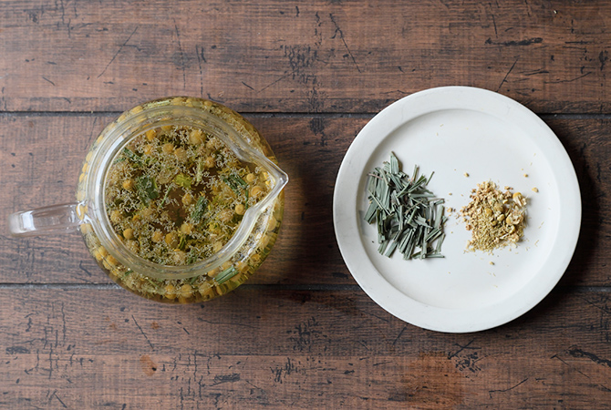 ハーブティーを入れるときには、香りを十分に抽出しましょう。そのためのポイントはふたつです。1つ目はハーブをふんだんに使うこと。紅茶の場合、茶葉を入れ過ぎるとエグみが出ますが、ハーブティーではその心配はありません。もうひとつ、大切なのはお湯の温度です。紅茶を入れるときは熱湯を少し冷ました80~90度が適温ですが、ハーブティーでは沸騰したお湯を使いましょう。