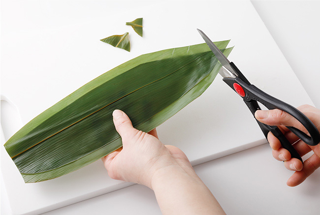 ③-1笹の葉は両端を2cmほど切り落とす。