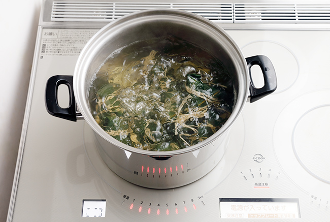 大きめの鍋にたっぷりの水を入れ【火力8】で沸かす。ちまきを入れてふたをし、【煮込み・火加減2~3】で1時間半ほどゆでる。とり出してザルにのせ、または吊るして水気をきり、あら熱をとる。
