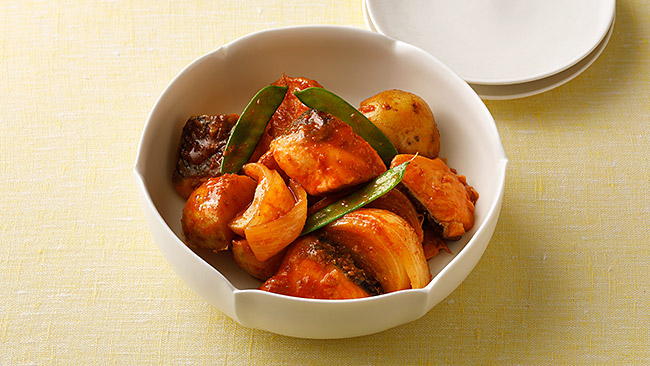 - サーモンと新ジャガのコチュジャン煮