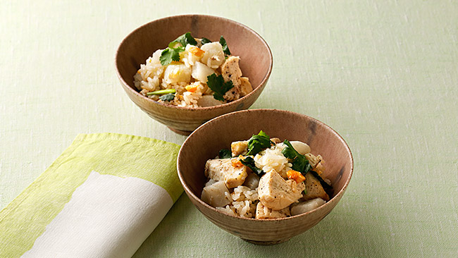 - カジキと長芋のエスニック風炊き込みごはん