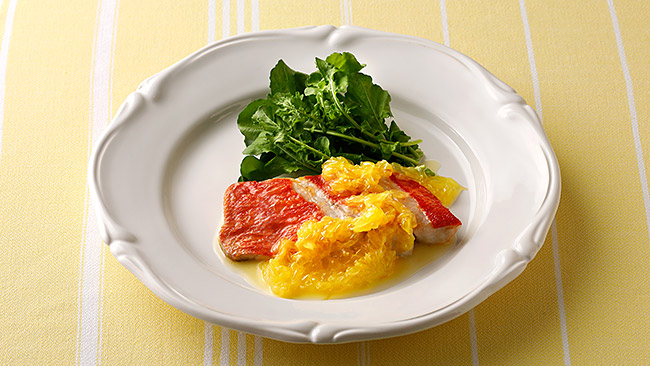 - キンメダイのソテー 夏ミカンソース