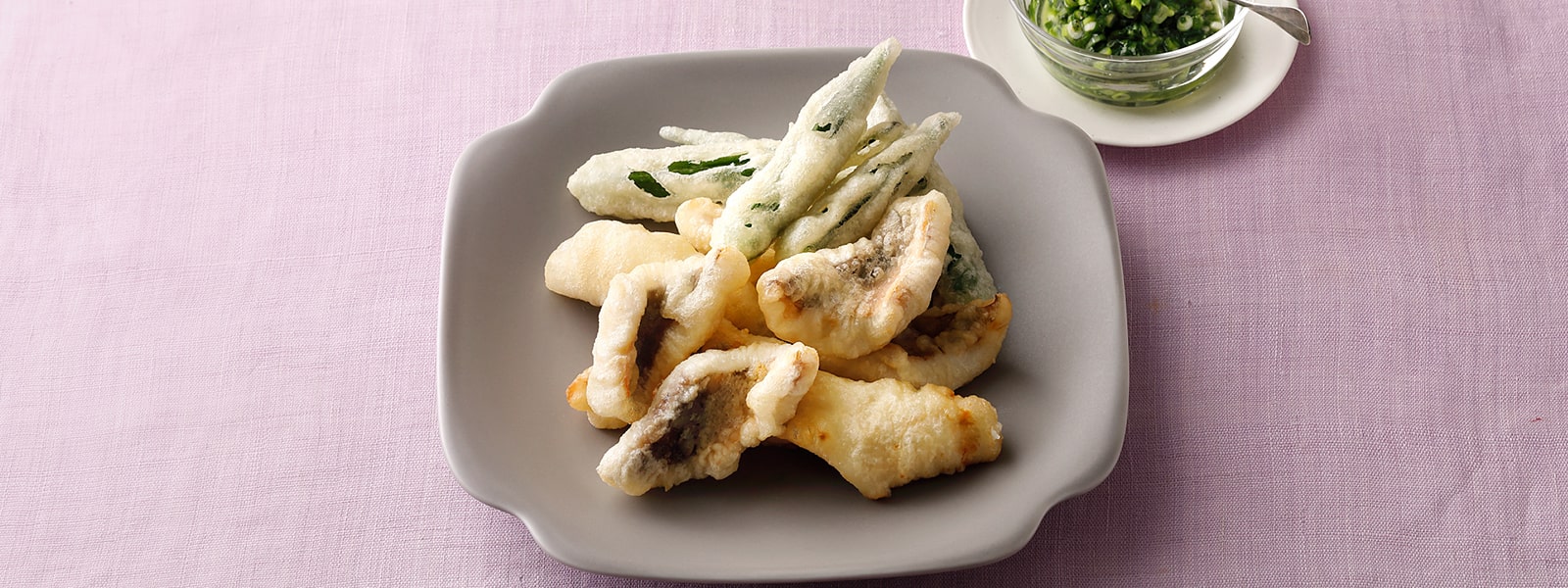 万能ネギを使ったネギダレは、酢を効かせているのでフリットの揚げ油のしつこさを気にせずにいただけます。