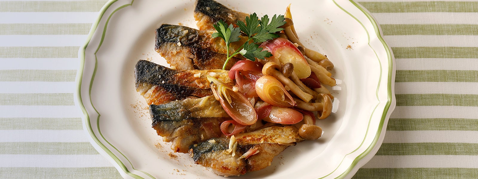 - レモン汁の酸味、仕上げにふるクミンパウダーの風味が青背魚のサバの美味しさを引き立てます。
