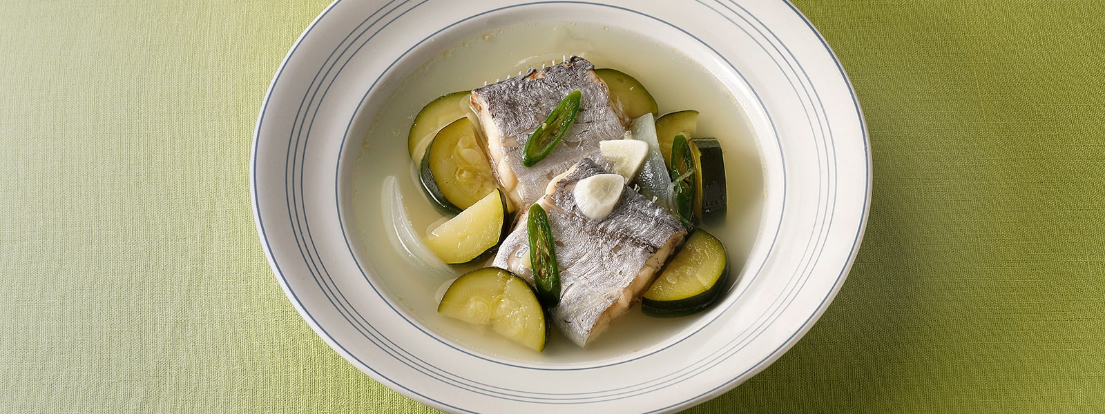今回は、クセの少ないタチウオと夏野菜のズッキーニをすっきりした辛味のある韓国風のスープにしました。
