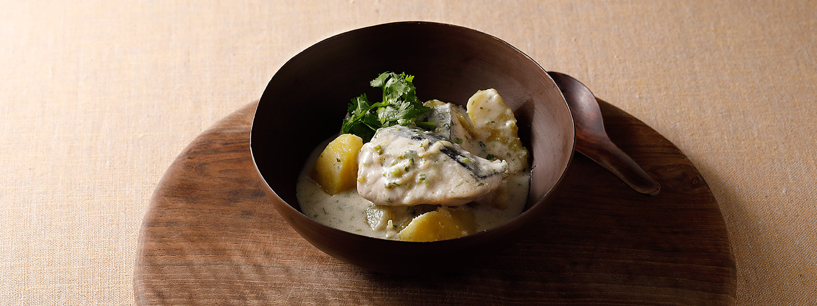 淡泊なサワラにサツマイモとココナッツミルクの甘みが加わります。