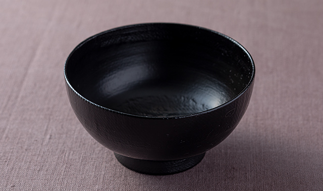黒い塗りの椀。口径のある、見込み(椀の内側)が広いものを選びましょう。