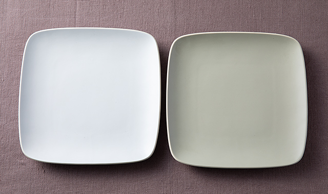 フラットな角皿。同じサイズの色違いを複数枚持っていると便利です。