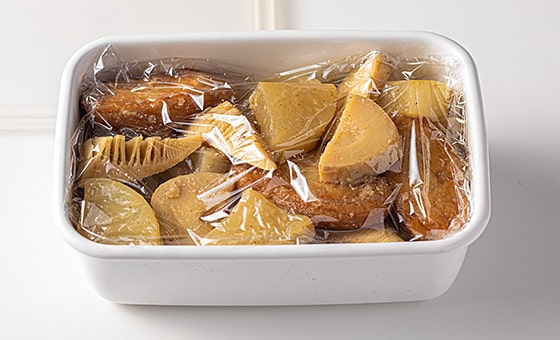 保存する清潔な保存容器に入れ、落としラップをしてから蓋をし、冷蔵庫で保存する。