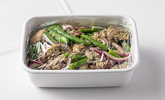 サバの水煮缶詰が、ハーブ麹で手軽に作れる洋風のマリネになります。ハーブ麹にしょうが汁を加えることで、味に変化がつき、サバのクセも和らぎます。