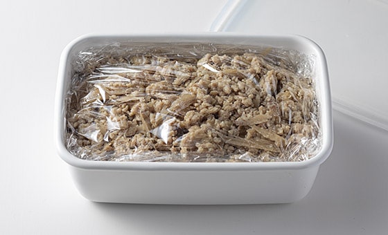 ・鶏ひき肉は、ジンジャーガーリック麹に漬けた状態でも、冷蔵庫で約3日間は保存できます。また、その状態で冷凍用保存袋に入れ、冷凍することもできます(下味冷凍)。冷凍する場合も、麹を混ぜて半日ほど冷蔵庫に置いて、柔らかくしてから冷凍してください。