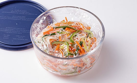 ・春雨はしっかり戻さないと冷蔵した際にポロポロになりやすいので、しっかりレモン甘酢を含ませましょう。