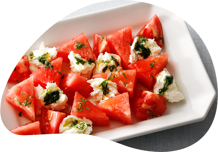 スイカの甘味と食感は、トマトの旨味とモッツァレラチーズのほのかな酸味によく合います。エスニックドレッシングとの相性もバッチリ!いつものカプレーゼとはひと味もふた味も違う一品を、お酒と一緒にお楽しみください。ロゼワインのほか、冷やした日本酒とも好相性です。