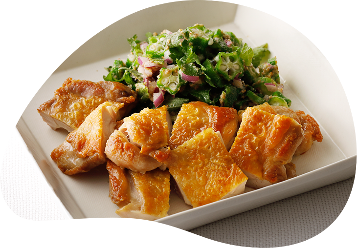 チキンソテーを美味しく仕上げるポイントは、丁寧な下ごしらえと皮目をじっくり焼くこと。ごま酢ソースは和食の薬味とすりごまをふんだんに加えて、香ばしくスッキリとした風味に。皮はパリッと身はジューシーに焼き上げたソテーとの相性は抜群です。
