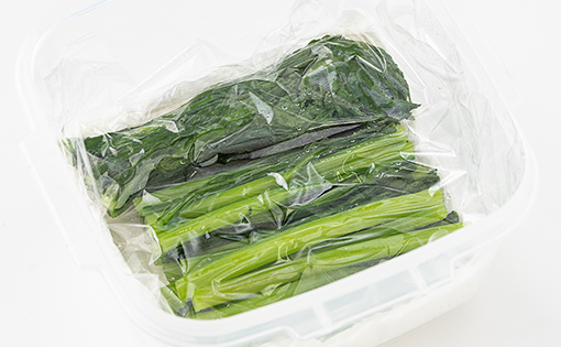 - 春菊は一度に1束分をゆでて水気をしぼった状態で密封容器に入れ、冷蔵保存すると翌日の副菜や汁ものにすぐ利用できて便利です。