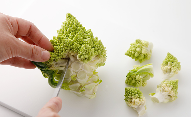 - ロマネスコはサッとかためにゆで上げるとコリコリとした食感がアクセントとなり、サラダにもメリハリが出ます。