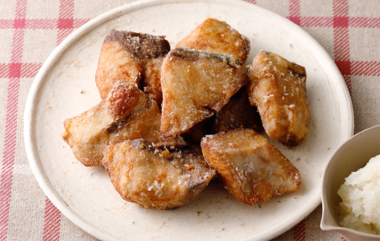旬のぶりをしっかりと下味をつけてから揚げに。そのまま食べても良し、柚子胡椒おろしをのせて食べるとなお良し!柚子胡椒+大根おろしが、スッキリとした後味にかえてくれます。