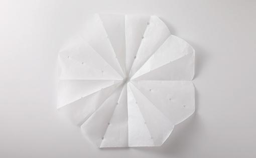 ④広げると、中心と放射線上に穴が開いた形にできあがります。