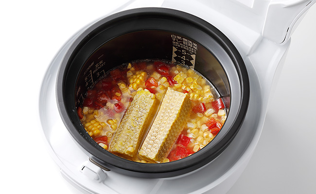 - トウモロコシごはんを炊くときは、芯も入れるとより香りと甘みが増します。