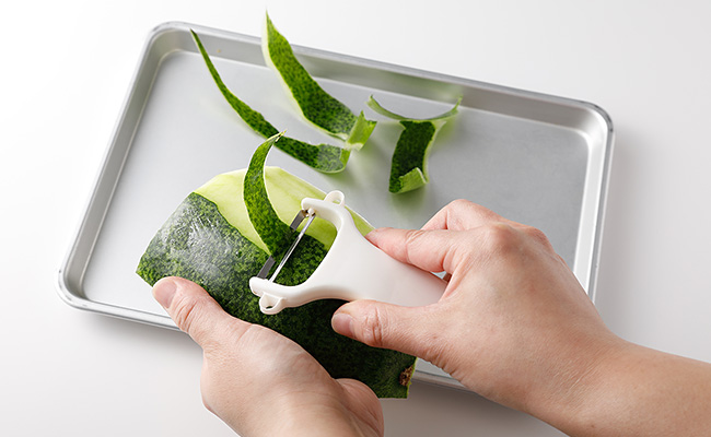 冬瓜の皮はピーラーでむくと手軽でオススメ