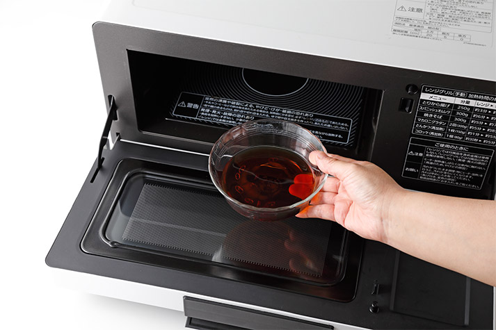 南蛮酢をつくる- 耐熱容器に調味料をすべて入れて混ぜ合わせ、ラップをせずに【レンジ】【手動600W】で1分加熱する。
