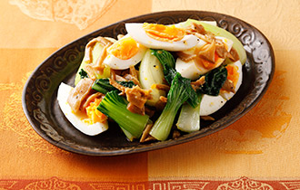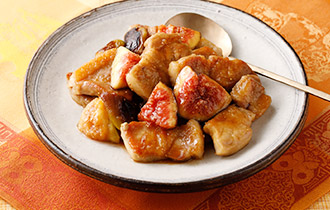 - 旬の食材にエスニック風の調味料や食材を加えた中華風の献立。いちじくと豚肉の五香粉炒めに、チンゲンサイの歯ごたえを楽しめる和えもの、香菜がカボチャの味を引き立てるスープです。インパクトの強いエスニック食材と旬の食材との意外な組み合せを楽しめる、簡単便利なレシピです。
