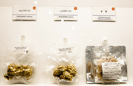 3Fではほかにも、宇宙ステーション補給機「こうのとり」の模型を使ったアート作品や、デジタルサイネージで宇宙遊泳を疑似体験できるインスタレーション、実際に宇宙で食されているスペースフードや調味料など、宇宙航空研究開発機構(JAXA)ご協力による、さまざまな展示が楽しめます。遠い宇宙で今行われていること、使われている技術に、銀座の真ん中で直に触れられるのもこのイベントの醍醐味。まさにここは、「銀座の中の宇宙」なのです。