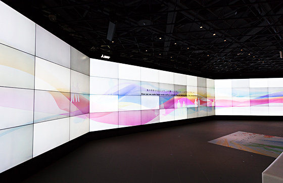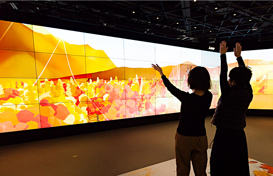 2Fでは64面のマルチディスプレイ「METoA VISION」で日本の四季に吹く風を映像とファンで疑似体験。今回からディスプレイの配置を映像に包み込まれるように変更し、より没入感を高める仕掛けとしています。