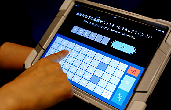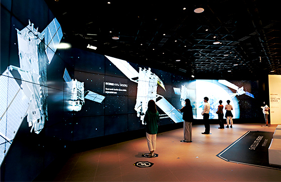 おなじみの64面大型ディスプレイ「METoA VISION」が、今度は大宇宙のパノラマに! この大画面とタブレットを使って、自分だけのマイ人工衛星を打ち上げるミッションに挑戦します。