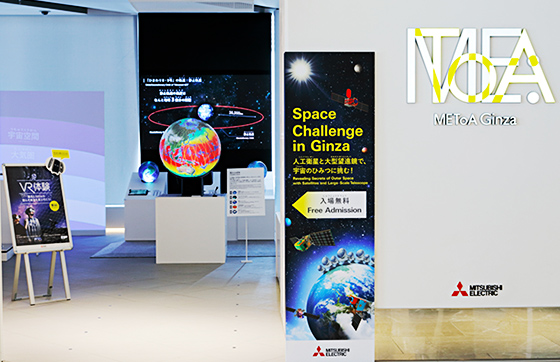 地球を見守り、宇宙を見つめ続けてきた三菱電機。「Space Challenge in Ginza」では、その最先端技術をユニークな参加型アトラクションや体験型展示にてお楽しみいただけます。
