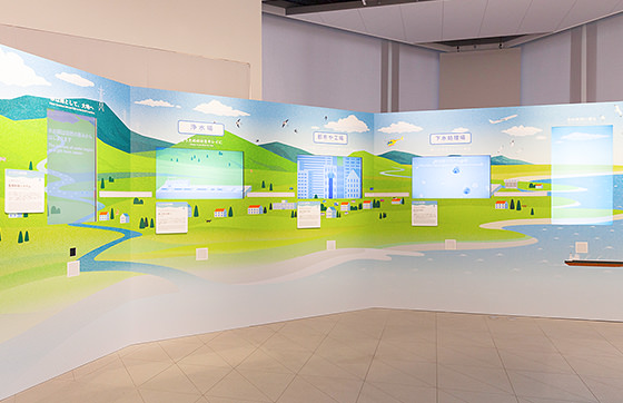 3Fでは、「水の循環」を支える三菱電機の技術などを、ユニークな展示やゲームでご紹介。“Water Journey”、 旅する水の物語を楽しく体験できます。