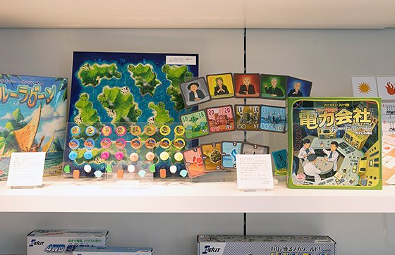 毎回イベントに関連したセレクト商品を展開する1Fのショップコーナー。「でんき島の大冒険」では、発電をテーマにしたカードゲームや、太陽電池で発光するランタンやペンライト、電子回路をつなげて遊ぶモジュール玩具など、電気にまつわるグッズが勢揃い。冒険の記念にちょっと覗いてみてはいかがでしょう。