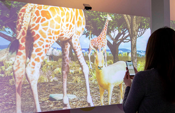 動物と対話できるようになれば、人々はもっと生き物や自然、地球環境のことを真剣に考えるだろう──。三菱電機グループ社員のこの一言から生まれたのが、疑似体験プログラム「動物とともに生きるミライ」です。QRコードを読み込むと、スマホと会場のディスプレイが連動。やってきた動物たちが話しかけてくれます。スマホを操作して会話を進めていくと、彼らの目線から環境問題を知ることができるという仕掛け。お子さんはもちろん、大人にもハッとした気づきをもたらす、やり応えのあるコンテンツです。