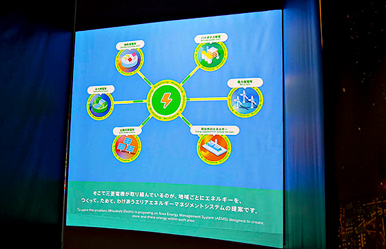 今回の企画展示から、大型ビジョンがリニューアル! プロジェクターによる合計16Kの高精細映像により、これまで以上に迫力のあるアトラクションが楽しめるようになりました。新ビジョンで体験できるのは、電力の地産地消を実現する「エリアエネルギーマネジメントシステム」。その内容を詳しく紹介していきましょう。