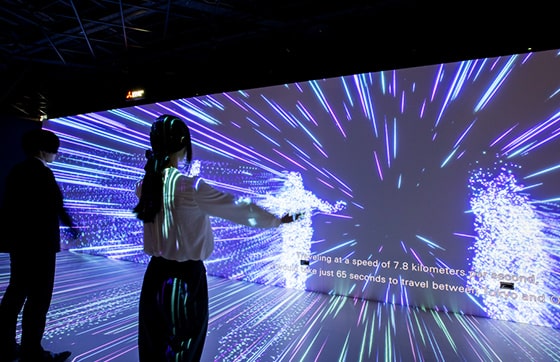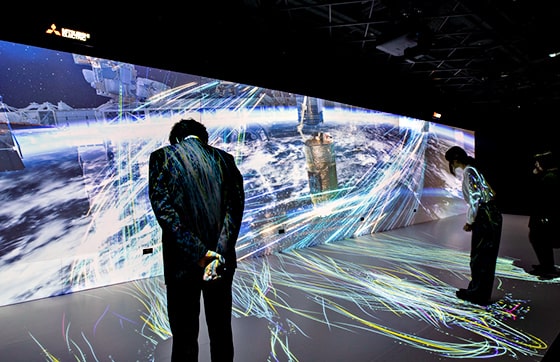 ここからは、METoA Ginzaでも屈指の人気を誇るコンテンツの数々を一挙に体験。なかでも目玉となるのが、巨大スクリーンで宇宙を旅する「HOPE FOR UNIVERSE」です。大迫力の映像と音響で、三菱電機が実現した「宇宙のあたりまえ」を体感してみましょう。