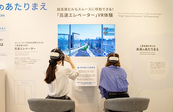 中国最高層ビルの上海タワー(128階建て・632m)にも導入されている、三菱電機の超高速エレベーター。その速度は、分速1,230mを誇ります。3Fでは、この超高速エレベーターをVRで体験できるコーナーを設置。METoA Ginzaを起点に銀座の街を高速上昇しながら、東京の景色をパノラマで楽しむことができます。