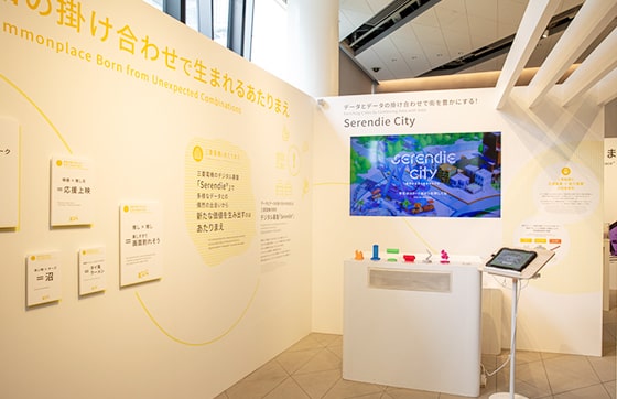 家電から宇宙にまでわたる三菱電機の事業領域。そこで培ったさまざまな技術や知見、データを掛け合わせることで、まったく新しいアイデアやソリューションが生まれています。その価値創造を支えるのが、三菱電機のデジタル基盤「Serendie®」です。展示では、「家電・住宅設備」「人工衛星・宇宙」「モビリティ・交通」など5つのカテゴリーから2つを選び、組み合わせて新しいシステムを創り出す体験ができます。ここから、「未来のあたりまえ」を提案してみませんか。