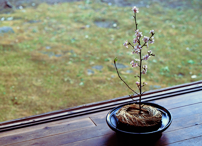 桟俵(さんだわら)に時節の花を立て、神聖なものが宿る依代としてしつらう。