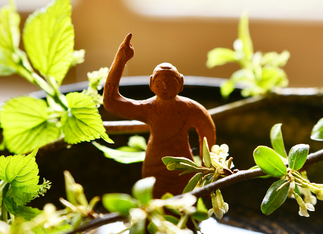 花御堂の誕生仏に勢いよく芽吹いた新芽を添えて。